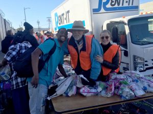 A 17-year-old tradition! A volunteer day with the Skid Row Project as we sorted and distributed 650 packages full of warm clothing, toys, and health care kits with friends of The Global Bridge Foundation.